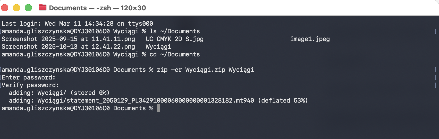 This guide explains how to create a password-protected ZIP archive from a folder using the Terminal.